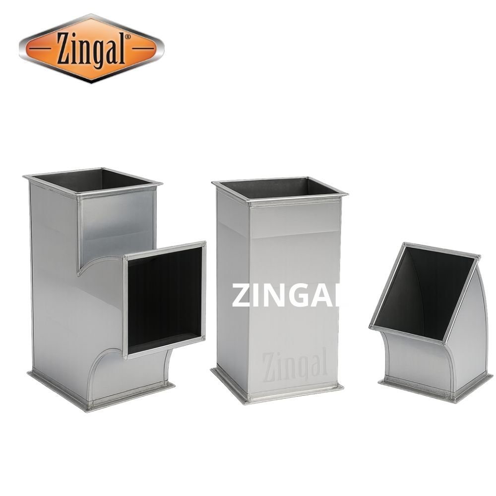 Ductos para sistemas de extracción, fabricado en lamina de acero galvanizado calibre 20 inoxidable, apto para cualquier sistema de ducterias, es fabricado en Bogotá por Zingal y vendido en toda Colombia. Ref: EX19