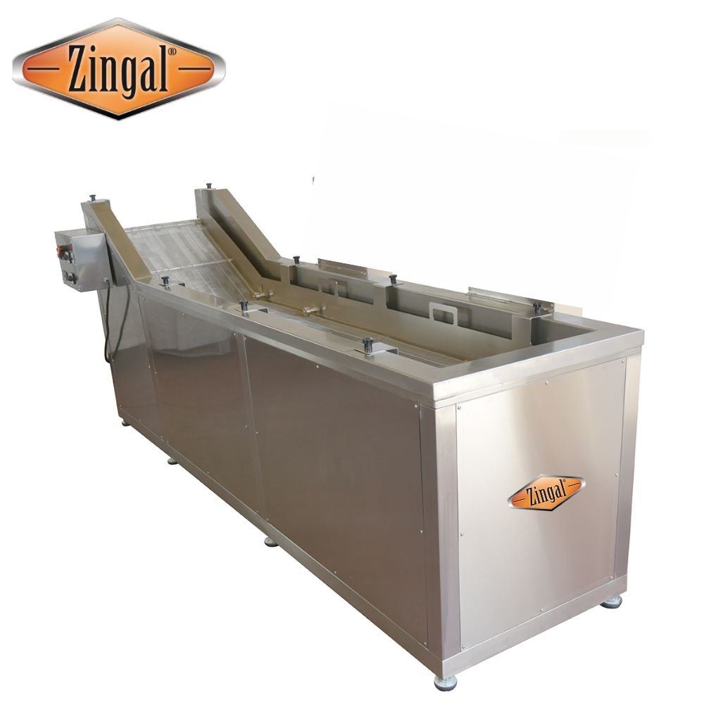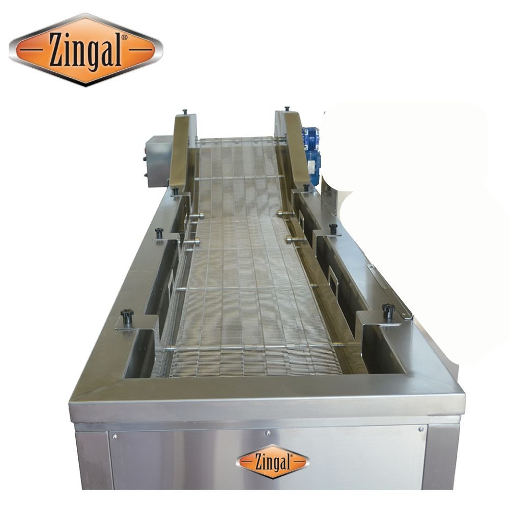 FREIDOR DE CONTINUO CON BANDA TRANSPORTADORA REF C66: La elección de alto rendimiento para tu planta industrial. Este freidor continuo es excepcional en términos de eficiencia, calidad y durabilidad. Diseñado para plantas procesadoras de alimentos , este freidor es la clave para una fritura de primera categoría. Con su fabricación en lámina de acero inoxidable, este freidor garantiza resistencia y fácil limpieza. Su innovador sistema tipo túnel en los quemadores industriales permite una distribución uniforme del calor, proporcionando una potencia de 400,000 BTU para una cocción rápida y eficiente. Nuestra freidora en continuo para frito o pre-frito permiten la fritura de gran cantidad de productos precocinados tales como patatas fritas, frituras de precocinados como croquetas, bolitas, flamenquines, nuggets, productos pasteleros en general como: churros, donuts, buñuelos, frutos secos: cacahuetes, almendras, anacardos…. Incluso para cocciones de pasta. Con ellas se obtiene una excelente calidad en la terminación así como un óptimo rendimiento de la producción. Incorpora un variador de velocidad que permite la regulación del tiempo de cocción del producto que se elabora, con la intención de que siempre tenga la cocción ideal y adaptada a una infinidad de productos. Permite una fritura o cocción homogénea, con una menor absorción de aceite a un coste más reducido gracias a la reutilización y filtrado del aceite. Gracias a esto el aceite es más duradero y de mayor calidad. Fácil limpieza y desmontaje, gracias a la extración completa de las cintas de transporte para la limpieza de la cuba. Fabricado en Bogotá, Colombia, por ZINGAL es una opción confiable y de alto rendimiento que se adapta a tus necesidades culinarias.