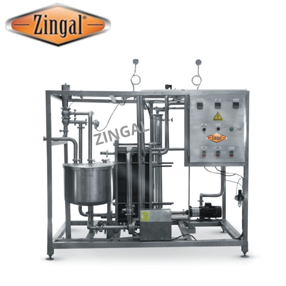 Nuestro pasteurizador de placas para 200 litros/hora marca Zingal, esta fabricado en acero inoxidable tipo 304 especial para alimentos, su funcionamiento es a vapor, viene con 4 secciones regeneración, calentamiento, retención y enfriamiento, viene con bomba centrifuga para líquidos, 2 rejillas separadoras de flujos, sus sistema eléctrico es controlado por medio de un tablero electrónico en donde están ubicados los mandos y indicadores de temperatura, las placas son importadas americanas marca APV, este equipo es útil en plantas de procesamiento que requieran una pasteurización optima y rápida, equipo fabricado en Bogotá, por Zingal y vendido en toda Colombia Ref: L13
