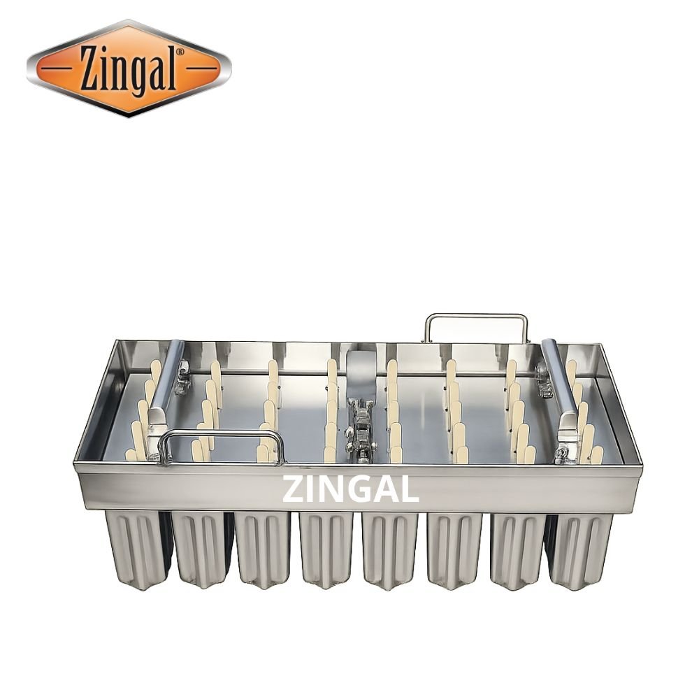 Adquiere nuestro molde para paletas liso o acanalado marca Zingal en Bogotá, Colombia. Este molde esta fabricado en acero inoxidable especial para alimentos, se puede fabricar de diferentes formas y tamaños, manteniendo su presentación a lo largo del tiempo. Con características amigables con el medio ambiente y diseñado para trabajo continuo Ref: F40